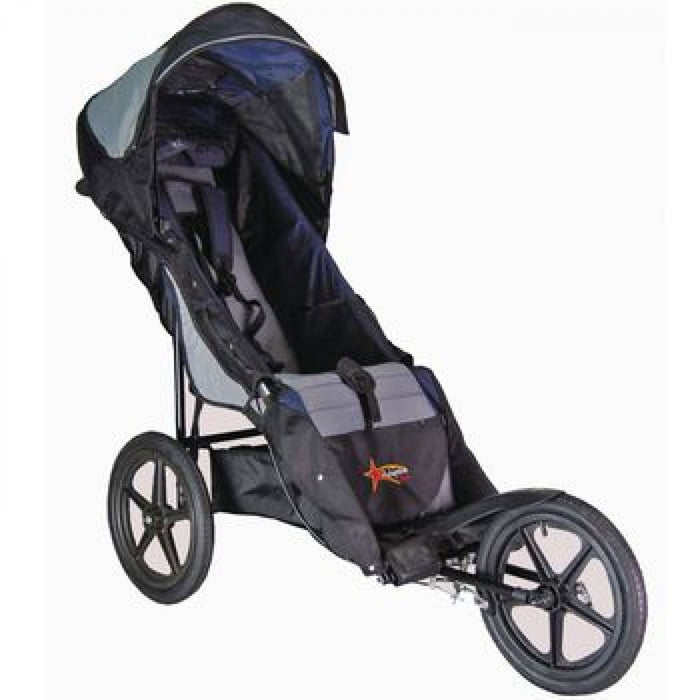 Pushchairs are designed for use as an indoor/outdoor mobility system. Chair easily glides through grass, gravel, over curves and sand. The chair comes with the traditional 8" fixed front wheel for the adventurous one. Optional front swivel wheel kit allows for greater indoor mobility.