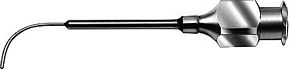 - 23 gauge cannula with reinforced shaft, curved 10mm tip, and polished finish