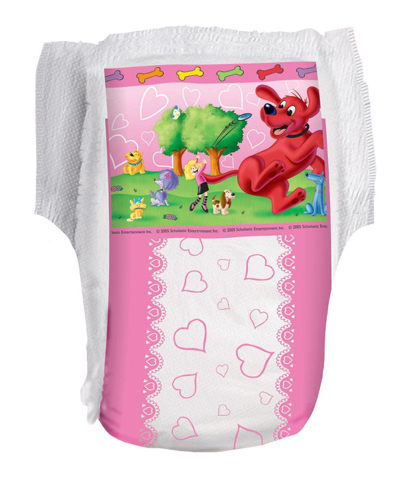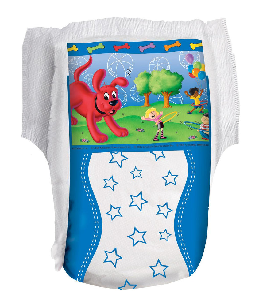 These training pants come in two gender specific designs featuring Clifford the Big Red Dog which kids will love. The super-dry core makes them perfect for night use, and the cloth-like backing gives the wearer the comfort and feel of real underwear