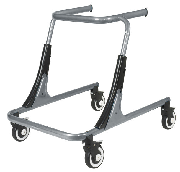 Wheel locks on all 4 casters to keep gait trainer stationary during transfers